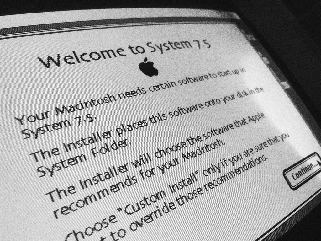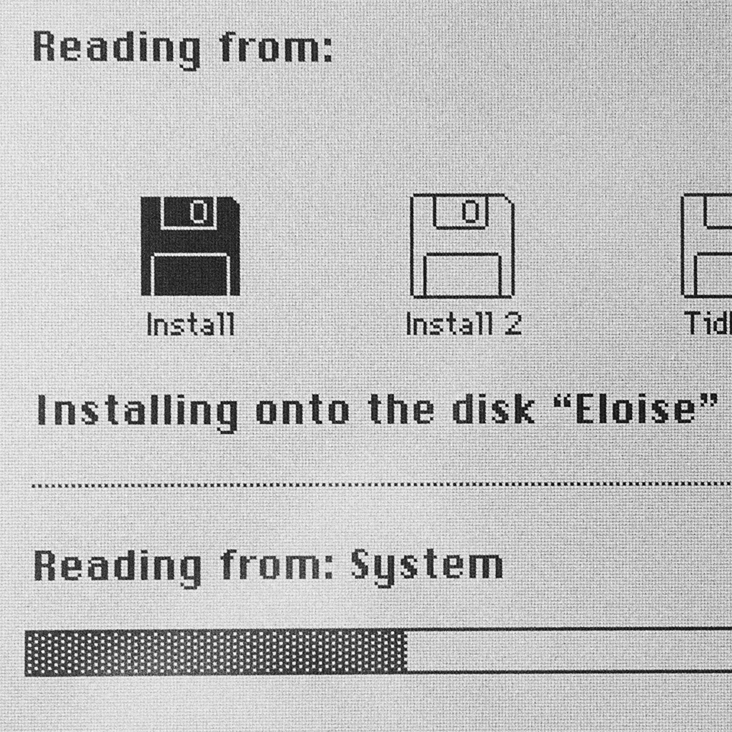 Apparently this Mac has been used in some university, I’ve backed up the content of the hard drive labelled “Eloise” and installed a fresh copy of MacOS 7.5 on the partially glitchy hard drive.