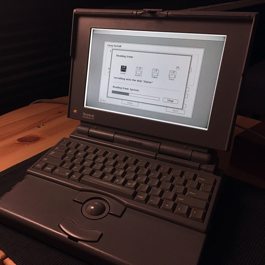 I found this PowerBook 170 a few years ago on eBay. Put a bid of 50£, forgot about it and discovered after a day that I won . The laptop is in great shape but the screen after some use gets darker around the corners, a well known issue with such old active matrix panels.