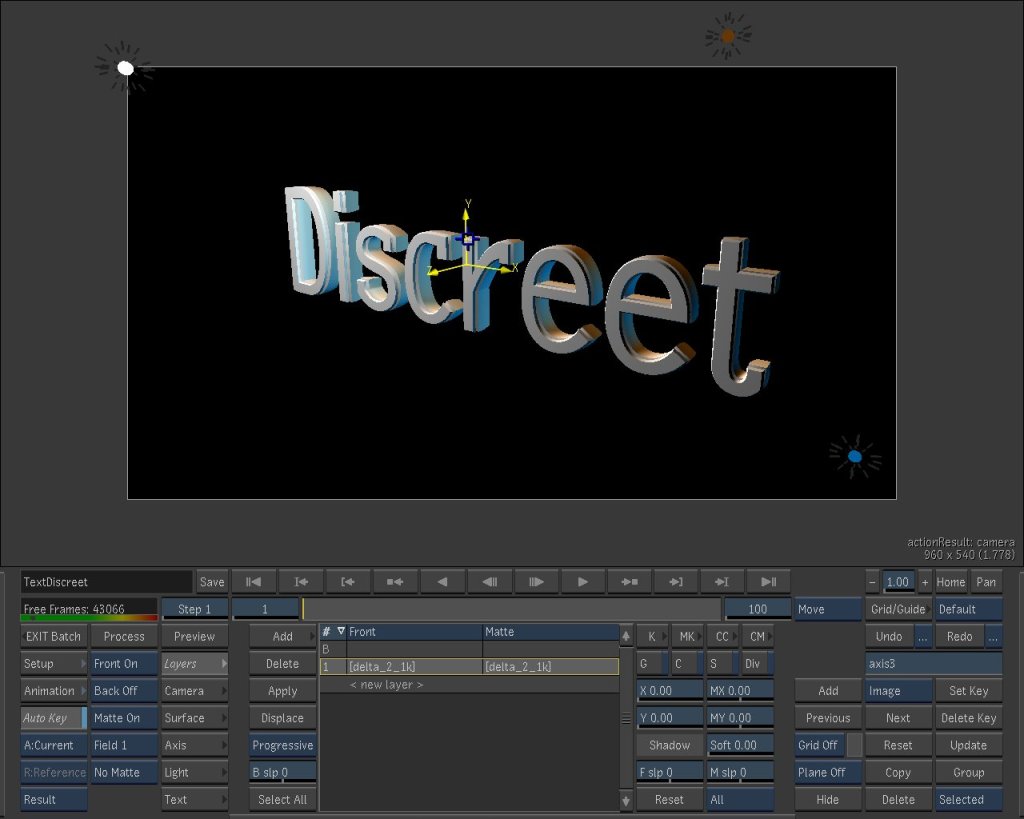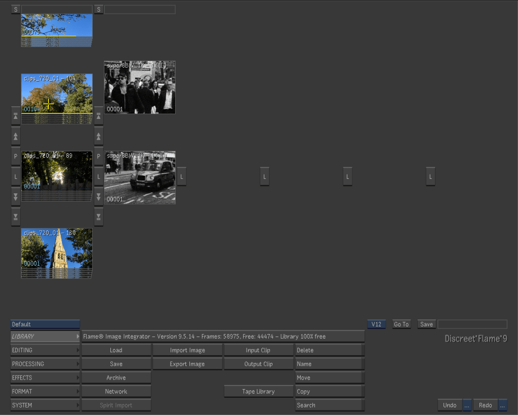 The original workstation came with Flint 7.6 installed, after some testing and consideration the best version of a discreet product that can run well on my Octane is Flame 9.5 from 2005. Finally with the version 8 they introduced resolution independent projects management and v 9 was completely rewritten as a 64 bit application. After this release Discreet launched another 2 versions of Flint / Flame for Silicon Graphics hardware, the last one named Flame 2008. Sadly I would need more memory and a V12 graphic card instead of my V10… soon or later I will upgrade : P