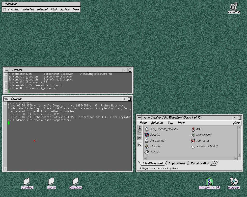 As a professional compositing supervisor it’s amazing to be able to play again with this software on the original SGI hardware.. actually in this case the very same machine I used 20 years ago.