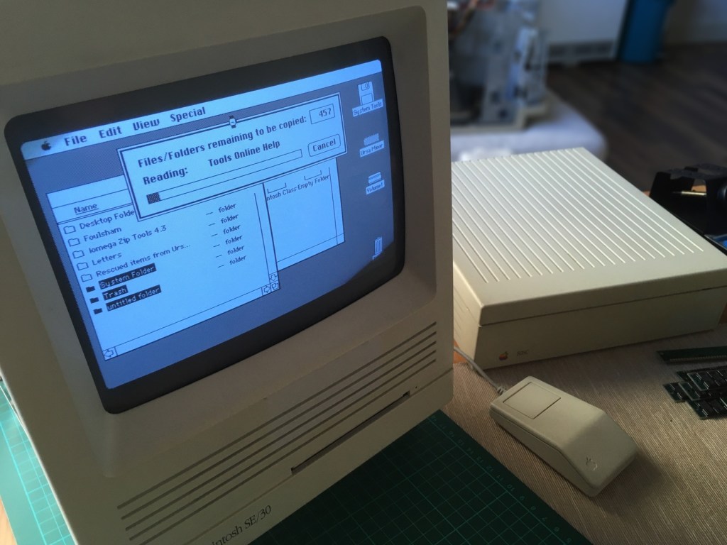 The entire process took around 3 hours. Once booted I discovered a nice 20Mb of memory installed in the system! I backed up all the files on my external drive and contacted the owner. I think he was surprise to find something this old still on the hard disk : )